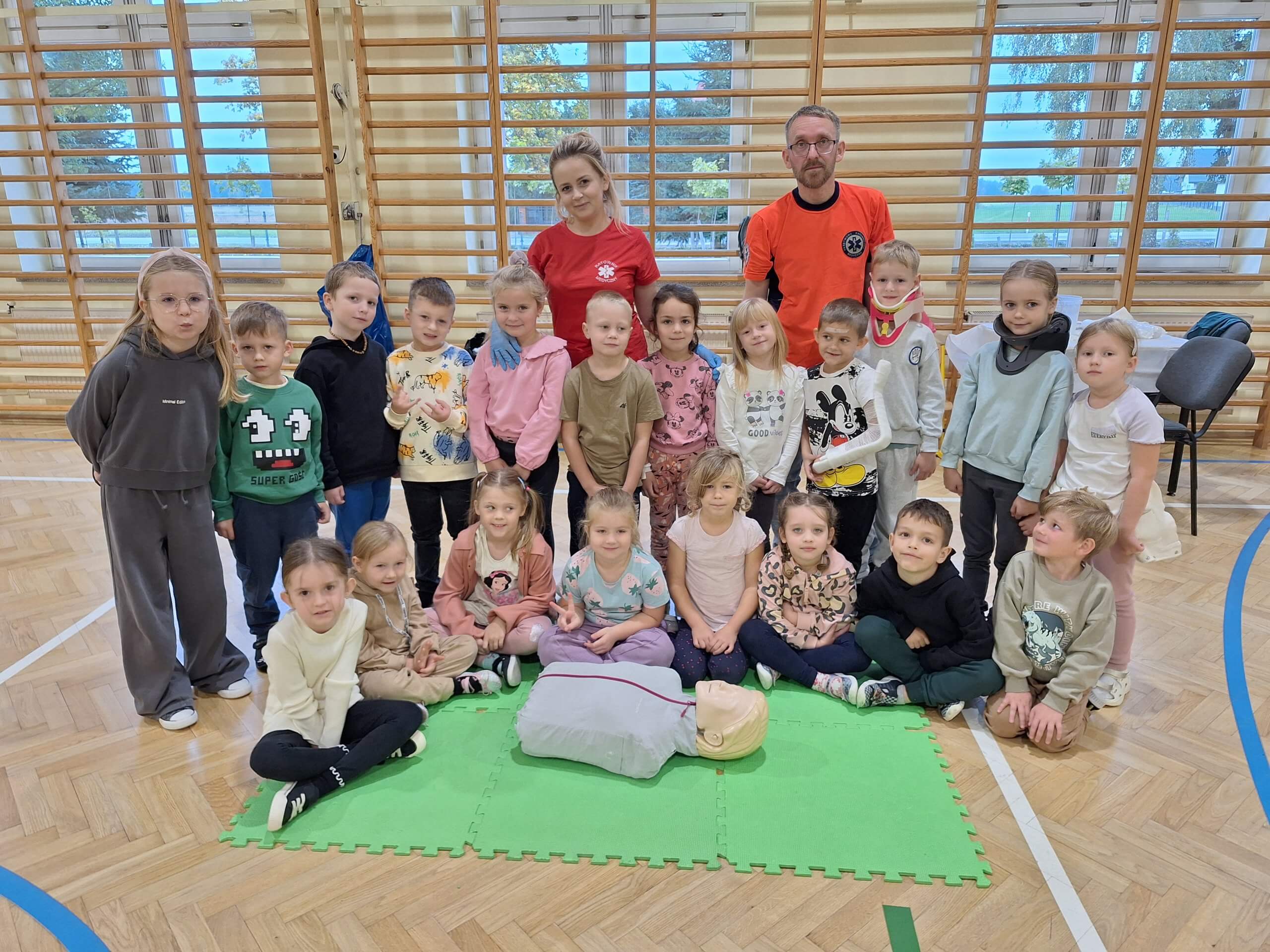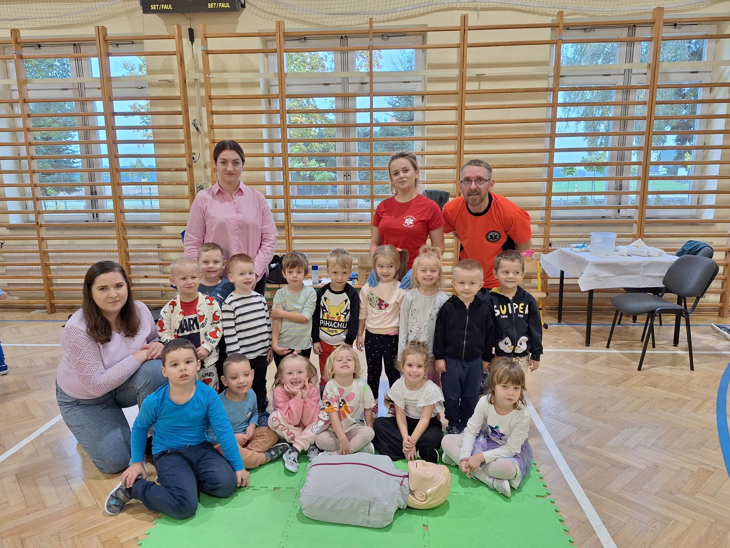15 października w Zespole Szkolno-Przedszkolnym w Dębowicy odbyły się warsztaty edukacyjne poświęcone pierwszej pomocy przedmedycznej. Uczestniczyły w nich zarówno przedszkolaki, jak i uczniowie klas 1-3. Zajęcia prowadzone były przez ratowników medycznych z Radzynia Podlaskiego – pana Mirosława Tchórzewskiego i panią Monikę Izdebską.