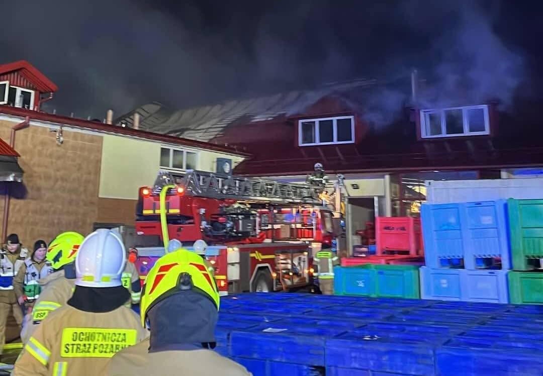 W Starych Kobiałkach doszło do groźnego pożaru, który objął zakłady produkcji mięsnej. Na miejscu zdarzenia pracują liczne jednostki straży pożarnej, podejmując intensywne działania gaśnicze.